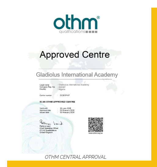 Gladiolus International Academy will guide you through the fundamentals of OTHM level 3&4 Qualification, from grasping the fundamental ideas to examining real-world scenarios.
